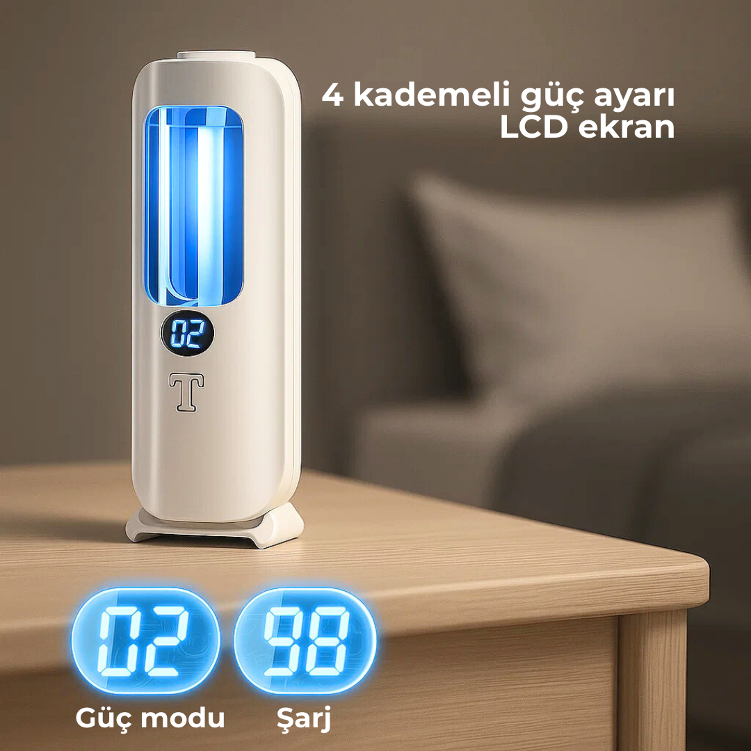CalmAir tamamen şarjlıdır. USB ile şarj ederek priz kablosuna bağlı kalmadan kullanabilirsiniz.